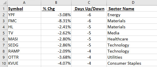 Seeing how many tickers are down in relation to how many are up could be a reflection of the general health of the markets. I then print out the sheets although I do also delete the 1 day tickers first to save paper.